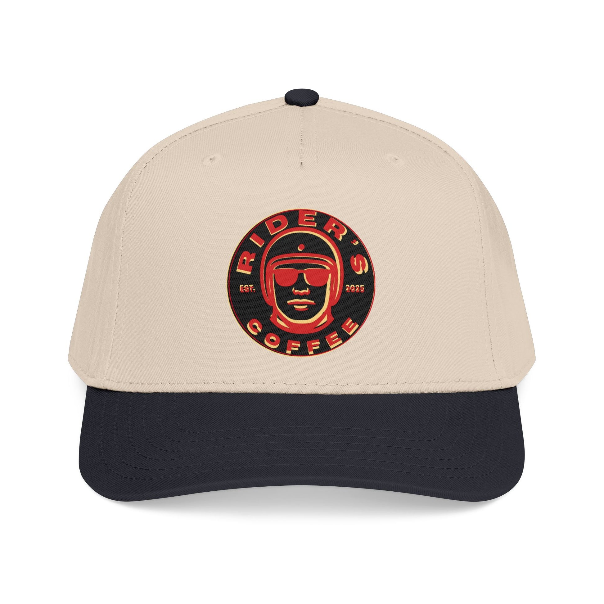 This structured 5-panel cap keeps a clean, confident shape, with a seamless front panel that lets the Rider’s Coffee crest stand out—bold, centered, and unmistakable. The two-tone colorway brings a vintage, road-ready feel, pairing naturally with worn denim, canvas jackets, or leather that’s seen some miles.